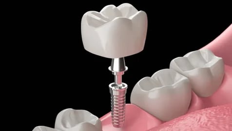 Implantes dentários são pinos de titânio que substituem raízes dentárias perdidas, oferecendo suporte para dentes artificiais.